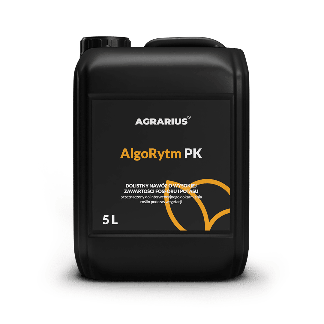 AlgoRytm PK jevisokorodno, tekuće fosforno-kalijevo gnojivo, posebno dizajnirano za folijarnu gnojidbu, koje biljkama osigurava esencijalne hranjive tvari poput fosfora (P) i kalija (K).